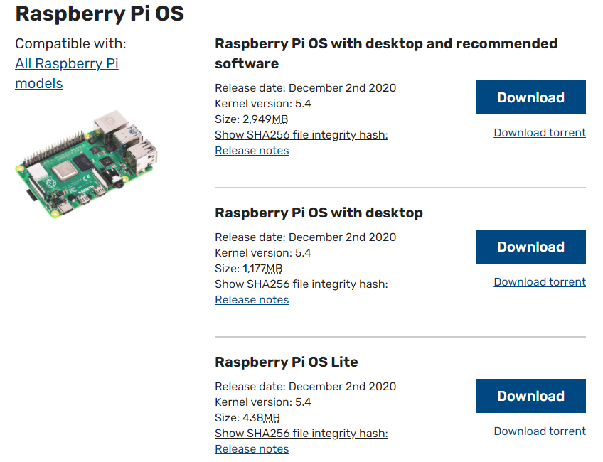 라즈비안은 라즈베리전용 운영체제입니다. 물론 라즈베리 전용 운영체제 뿐 아니라 다양한 리눅스 운영체제를 설치할 수 있습니다. 일단 라즈베리 파이 홈페이지 에서 원하시는 OS 유형을 선택합니다.