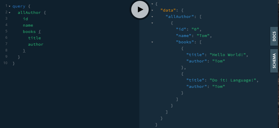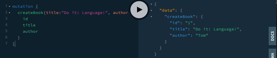 GraphQL Playground에서 간단하게 저자 및 책을 추가하고 검색을 해보도록 하겠습니다.