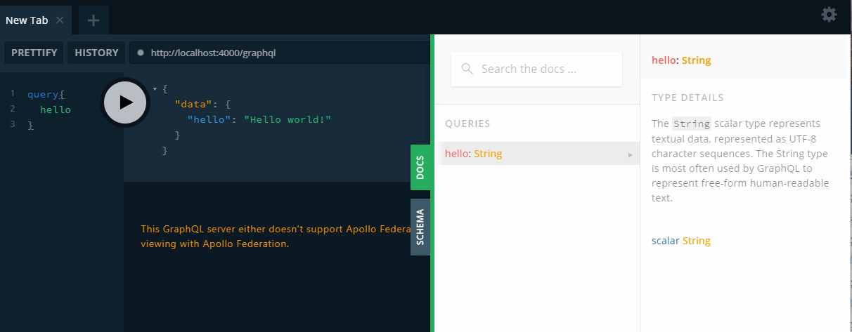 안녕하세요. devport 입니다. 이번 포스팅에서는 NodeJS로 간단한 Apollo 서버를 구축하고 GraphQL Playground로 Query 및 Mutation이 어떻게 동작되는지 자세하게 훑어보려고합니다. 예제는 처음 공식 홈페이지의 서버 구축 예제로 시작하도록 하겠습니다.